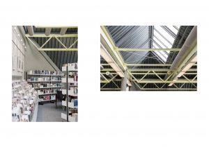 Architectural photography with the theme of coloured as well as textured surfaces of housing in Neugereut, Stuttgart. In addition, set of photographs to document the library of Neugereut.