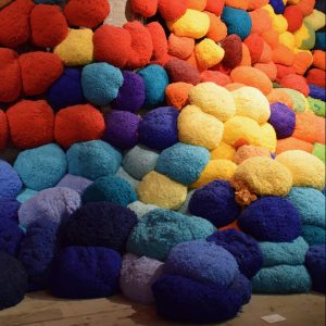 After a rough analysis of our stations of the excursion, further artists, like Franz Walther Erhard and Rebecca Horn, and other installations, I started to deal with the staging of a scene and its effects on human beings. Under the title: Studies on the staging of a staged scene using form and color to initiate interaction, action or emotion within the scenery – I have set up a strategies table that connects the crossing points of staging medium and its impact. I then held on to a variant, which dealt with how strangers are seduced into a touch. Then the design of a ‚hand rail’ was created.