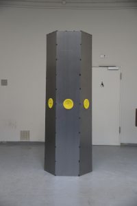 However, before the self-reference and subsequent self-attempts came into play, I developed a universal apparatus. If life in the 21st century, determined by social media and a progressive individualization of people, leads to the self-isolation and alienation of all, the anti-alienation apparatus is the right way out. A 2.40 meter high, hexagonal cylinder with round edged openings on each side, which are ready to try. Each of the six surfaces attracts users. It is impossible not to touch. The users come in contact with each other. The inevitable directness of the apparatus brings people people who otherwise would have been alienated.