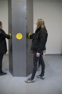This installation of the ‚hand rail’, like a guardrail, should initiate an interaction between two people. Passing passersby will be tempted to put your hand in the ‚hand rail’, advancing until you meet a passer from the other side and it comes to a touch. A touch happens without seeing the other person and can only be made by continuing to make eye contact for a short moment. Whether a conversation, a grin or a hasty retreat of the hand happens is left to the passersby alone.