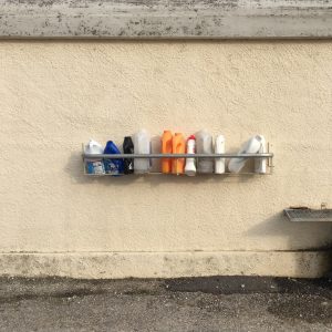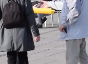 Starting with this installation of the ‚hand rail’, I went on to a self-experiment that brought me closer to my ideas of living space. Can the individual be active against alienation? Or can contact between strangers occur? In the self-experiment, different approaches were used to analyze how this project can be managed. Among other things, a belted extension in the form of a gutter, which should initiate a touch / a handshake, prepared the entrance to the investigations – see one-minute video