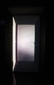 „In this project, the door of the 2G Studios was animated by the ‚babuschka‘ – principle: The door opens; then closes behind them reappeared, opened to reappear.” The mask represents the object of itself – so the door projects the same door on it. You can´t see what´s behind it – just the opening of the door – a infinity door. You can only move in one direction but you don’t go forwards. The contemplator is still in the real world during he has a look at a distorted world. A labyrinth is starting. Reality and fiction blur to an unit.